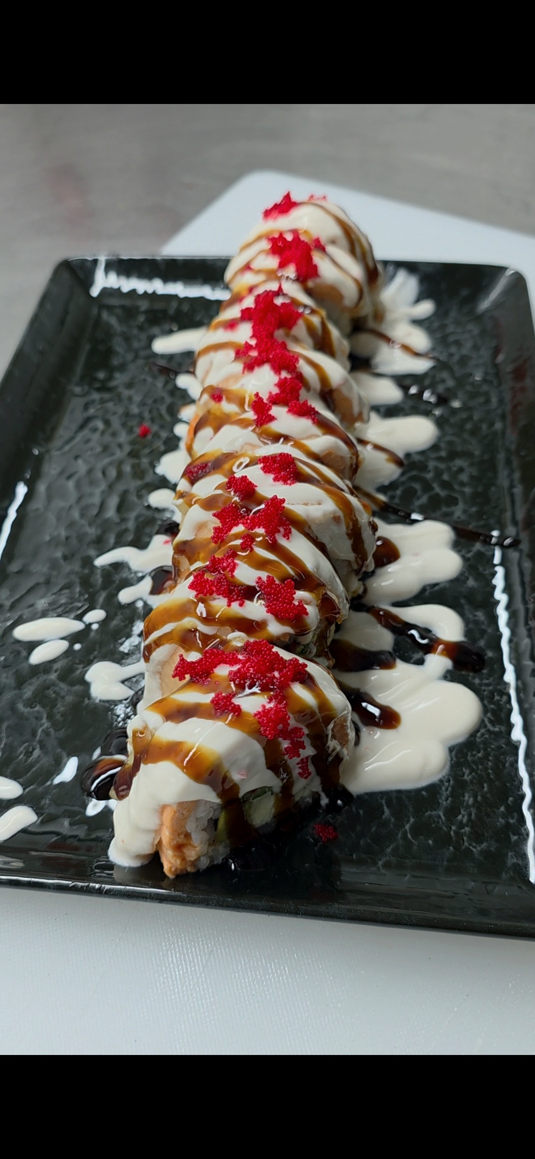 Рол смажиться тільки в тоненькому японському клярі і поливається грецьким соусом, який складається з соусі світ-чили, спеції, на основі грецького йогурту.